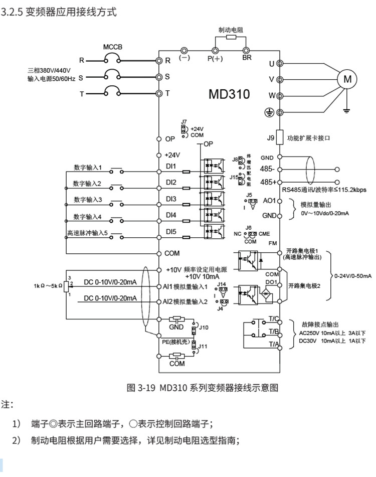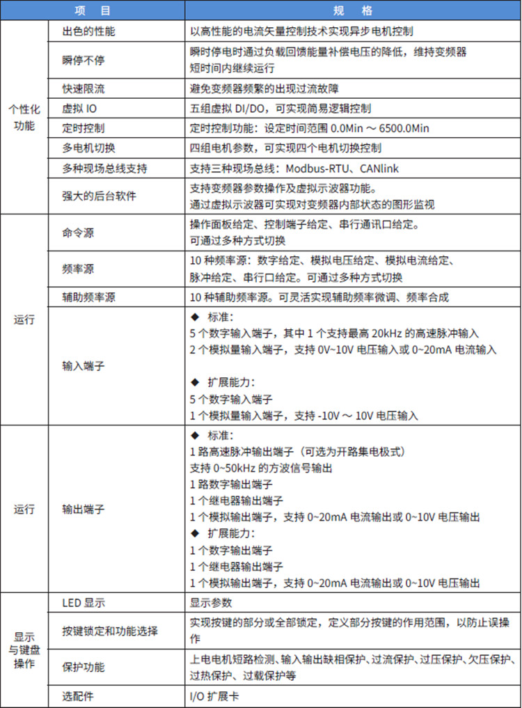 MD310 系列變頻器是一款通用緊縮型多功能變頻器,采用開(kāi)環(huán)矢量和V/F 控制方式,以高性能的電流矢量控制技術(shù)可實(shí)現(xiàn)異步電機(jī)控制。MD310 標(biāo)配RS485 通訊接口,支持Modbus RTU 通訊,可擴(kuò)展I/O 擴(kuò)展卡、CAN 通信擴(kuò)展卡。內(nèi)置PID 可方便實(shí)現(xiàn)閉環(huán)過(guò)程控制系統(tǒng),最多可實(shí)現(xiàn)16 段速運(yùn)行。